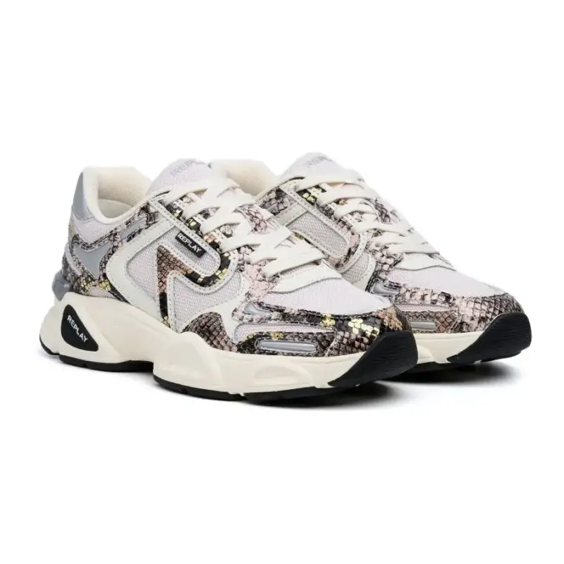Αθλητικά παπούτσια Destiny W Melt με κορδόνια και επάνω μέρος από πολύχρωμο σουέτ, ύφασμα και PU. Διαθέτουν μοντέρνο, σπορ σχεδιασμό με λογότυπο Replay στη γλώσσα, τη φτέρνα και το πλάι, καθώς και διακοσμητικό R. Έχουν χοντρή σόλα από καουτσούκ με λεπτομέρεια λογοτύπου.